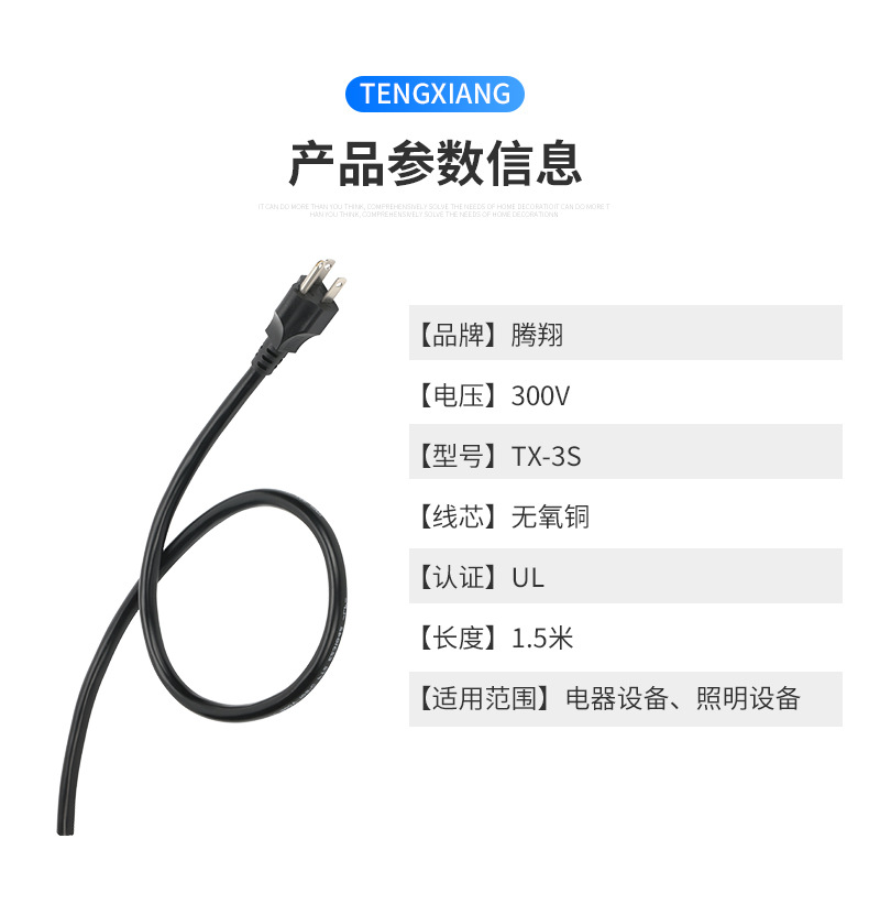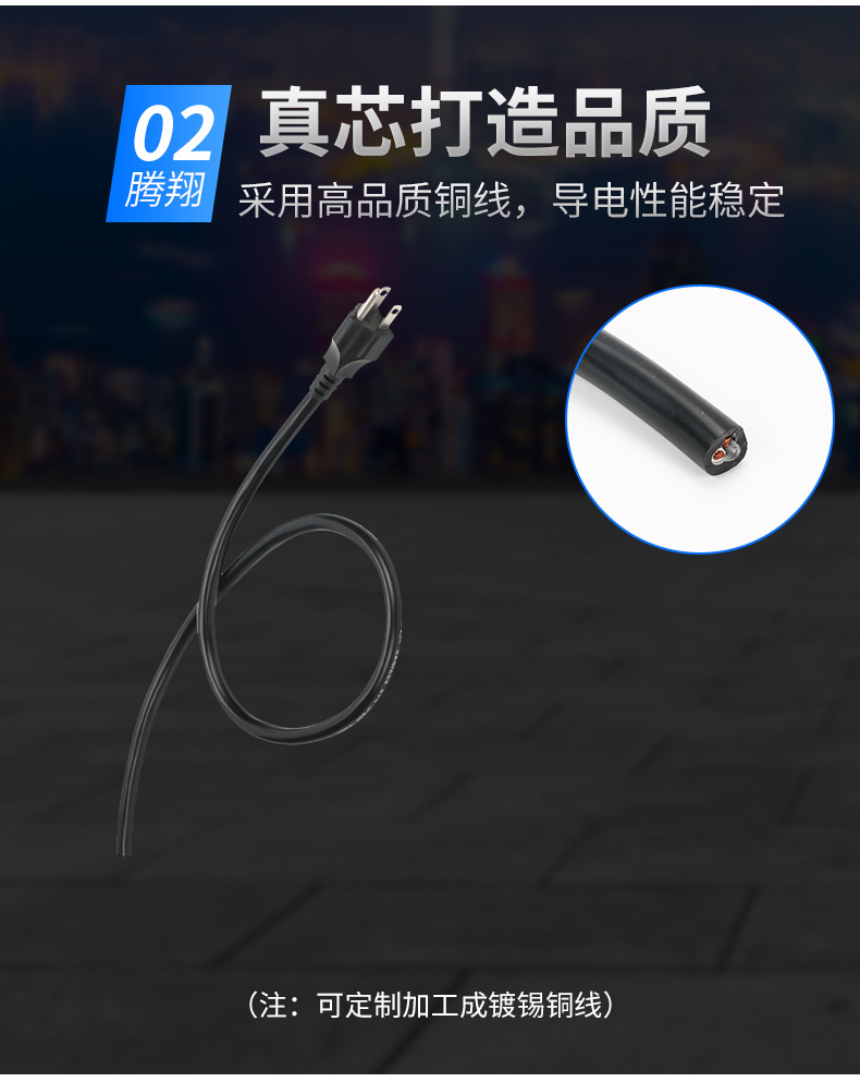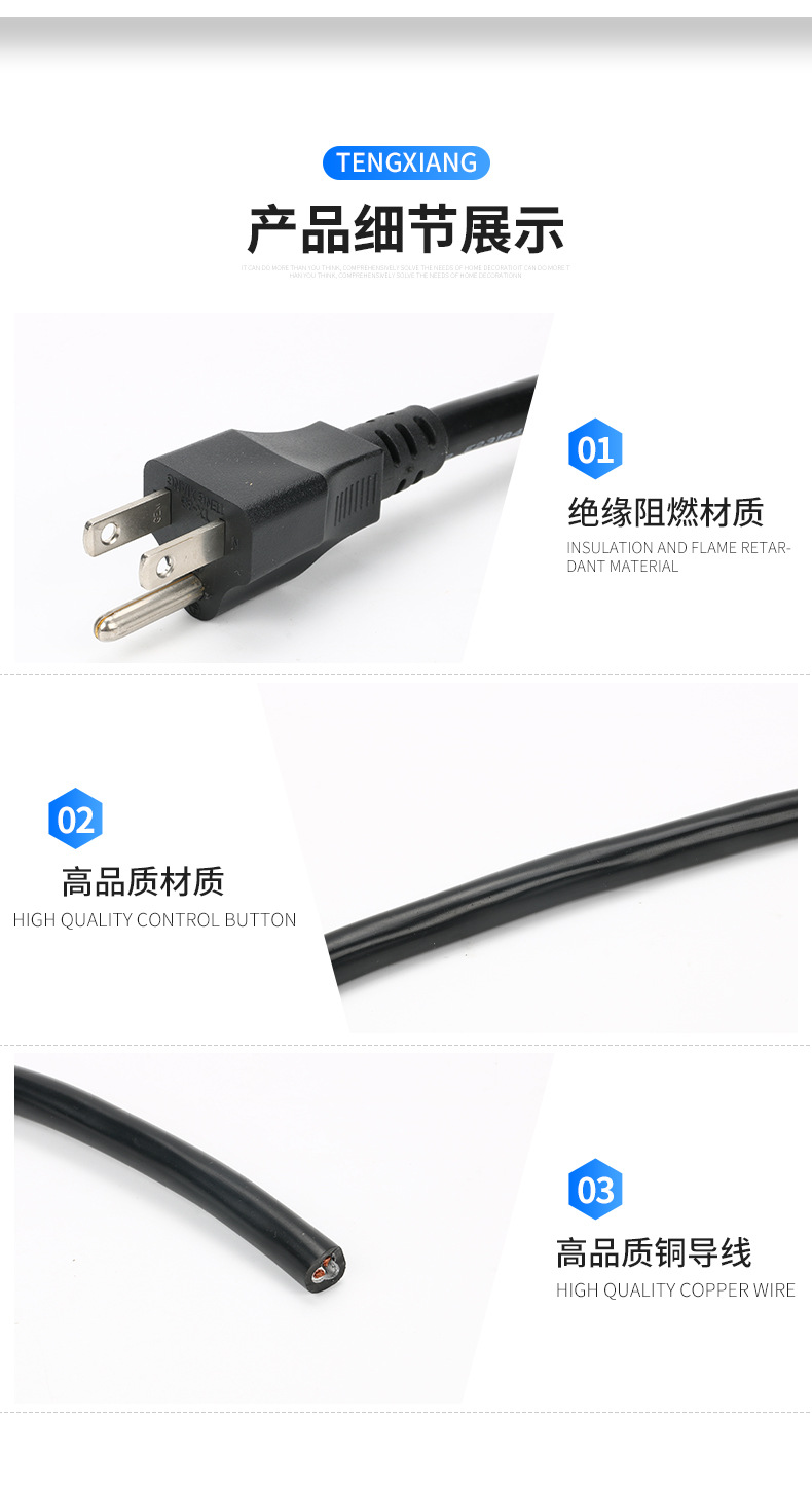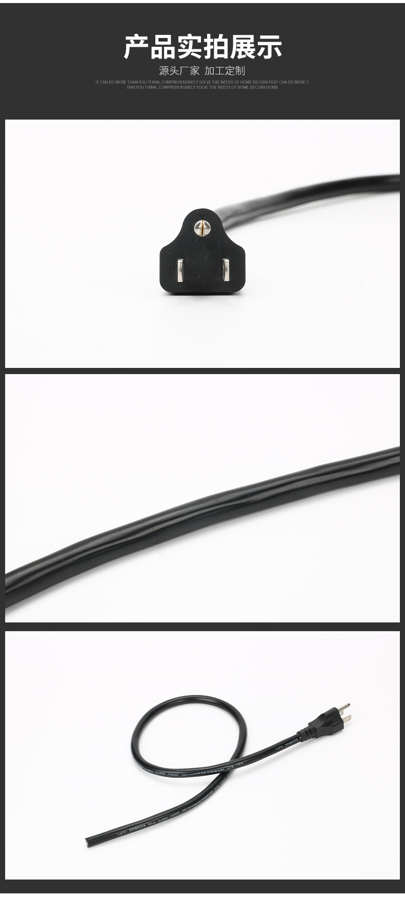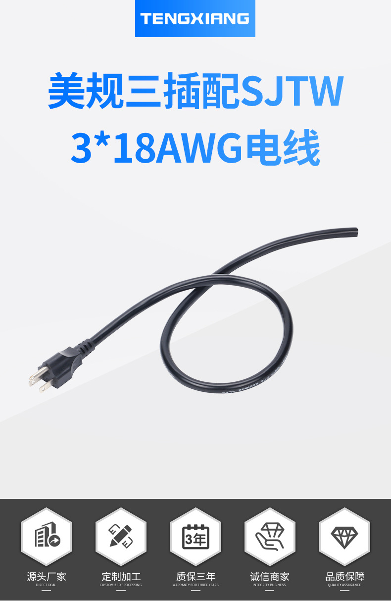 美规三插电源线3*18AWG户外设备电线UL防水阻燃美规三芯插头线